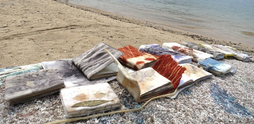 I'm pleased with assorted contact prints on various fabrics and papers. So addicted to do sorts of handmade stuff. This pile of art journals is only a few of the them still with me. Friends know me well may have one in their hands. I made the artbooks with coptic binding, some with nuno felted textural covers, some with natural printed fabrics. Each has a story of making behind.......