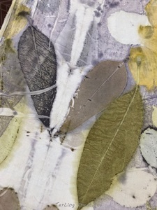 It's a 1.5 days botanical imprints workshop with mordant and printing skills. First started by introducing my sample prints of rayon.
